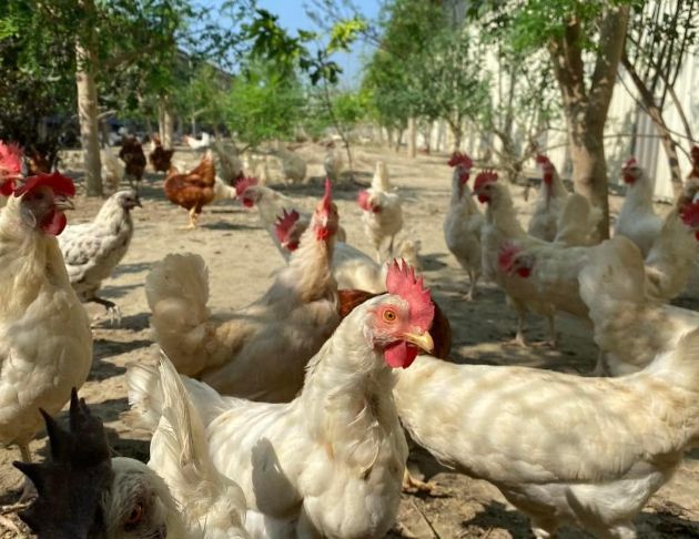 御品園專門飼養土雞與烏骨雞,以放牧畜養,提供寬闊的牧場,讓雞群每天在樹下自由奔跑,累了或想遮風避雨就到雞舍休息,且雞舍也會配合雞隻更換週期做消毒、清掃並靜置。飼料添加杏鮑菇粉、薑黃粉、蒜頭粉、辣椒粉、酒糟,還有法國進口的亞麻仁籽,讓雞群攝取充分的營養,飲水是採用逆滲透控管的水源。雞隻不施打生長激素、抗生素及動物用藥,每一隻雞朝氣十足,每一顆蛋營養滿分。